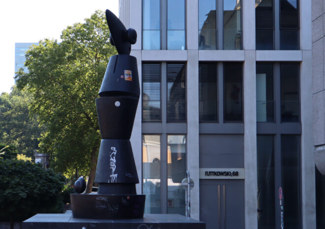 Sie sind ständig um uns herum, befinden sich an der nächsten Straßenecke, auf dem Dach, als Relief an einer Hauswand, an Plätzen oder im Spee’schen Park. Wir müssen sie nicht suchen, sie sind einfach da. Es gibt die großen, monumentale Gebilde aus Bronze, wie zum Beispiel das Reiterstandbild des Kurfürsten Johann Wilhelm II am Marktplatz, welches seinen Herrschaftsanspruch bis heute unübersehbar darstellt. Andere zeigen Büsten oder stattliche Figuren aus Stein und Bronze von den Berühmtheiten der Stadt. Einige sind bildendende Kunst und spiegeln die Kunstgeschichte der Stadt wider. Hinter jedem einzelnen Werk steht eine Geschichte, eine Persönlichkeit,